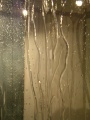 The water which glides down the Plexiglas doesn't create a uniform film but many single small flows which permanently change their way.